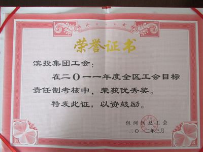 3月31日下午,,,,,從包河區(qū)總工會全委(擴大)會議傳來喜訊:j9九游會老哥俱樂部集團工會榮獲包河區(qū)“2011年度全區(qū)工會工作目標責任制先進單位優(yōu)秀獎”,,,,,成績的獲得來之不易,,,,,不僅是對集團工會工作的肯定,,,,,更是對集團工會的鞭策和鼓勵。。。。。