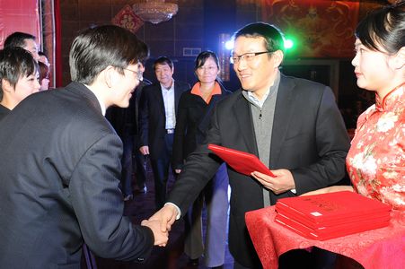 年會在現場激情、熱烈、活躍的氣氛中舉行。。。。。。。本次年會由領導致辭、表彰先進、晚宴及員工節目表演四部分組成。。。。。。。晚會一開始由集團董事長黃廣勇作新春致辭,,,,,總結了過去一年的風雨歷程和取得的輝煌成績,,,,,展望了2012年新的征程,,,,,并送出了美好祝愿。。。。。。。