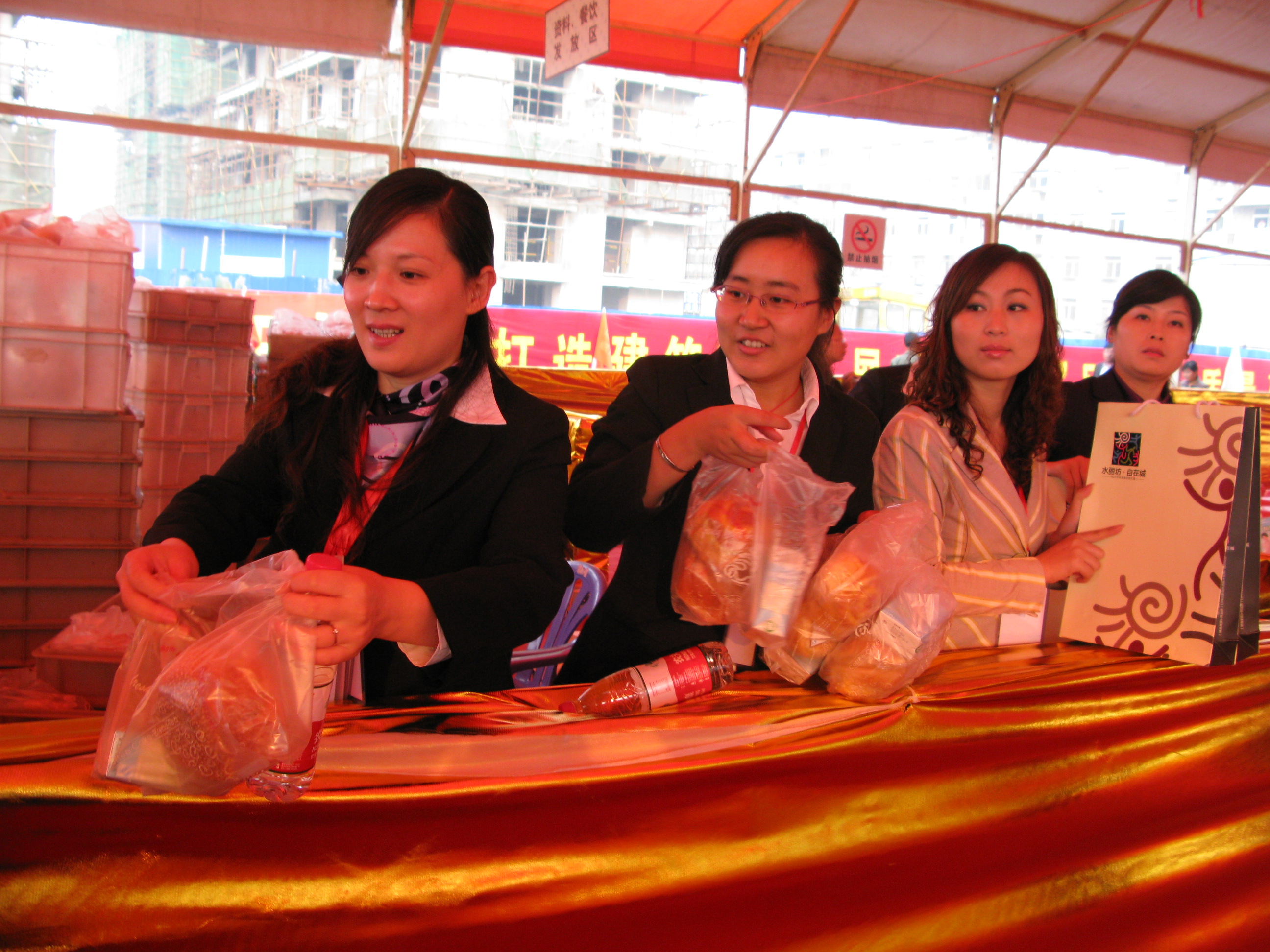考慮到部分購房者可能沒有吃早餐,,,,,,,,現場準備了面包和牛奶,,,,,,,,并備有大量的礦泉水