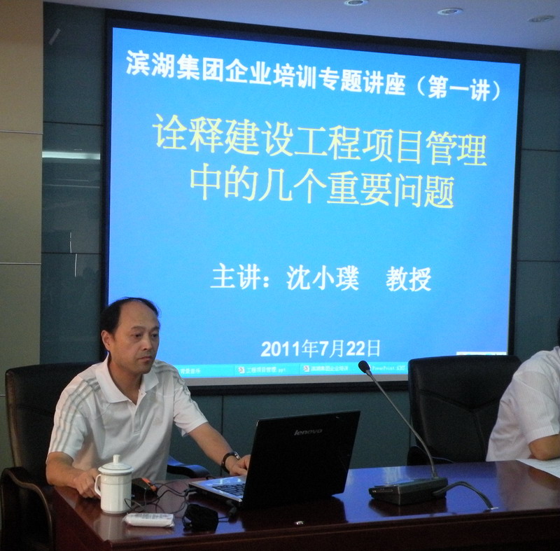 7月22日,,,,,,,,集團(tuán)聘請建工學(xué)院博士、碩士生導(dǎo)師沈小璞教授在集團(tuán)報告廳做了題為“詮釋建設(shè)工程項目管理中的幾個重要問題”的專題講座,,,,,,,,集團(tuán)班子成員、各部門負(fù)責(zé)人、各子公司分管工程的領(lǐng)導(dǎo),,,,,,,,全體工程管理人員聆聽了報告。。。。。。。。