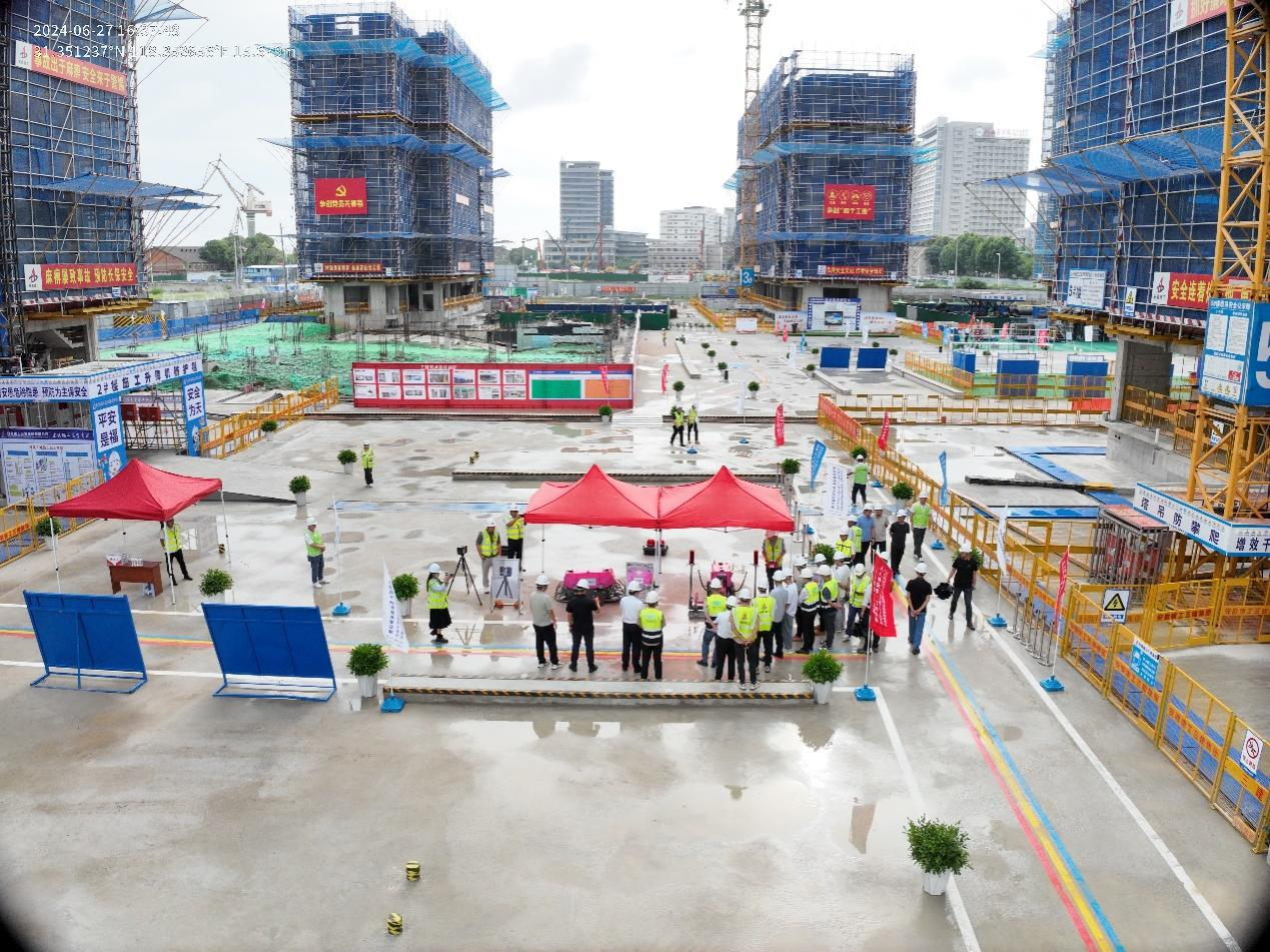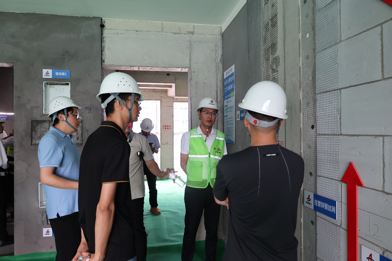 隨即觀摩團(tuán)分兩組進(jìn)入施工現(xiàn)場(chǎng),,,,,,,,先觀摩了項(xiàng)目的集中展示樣板、樓內(nèi)的二次結(jié)構(gòu)及抹灰的實(shí)體工藝樣板、智能裝備機(jī)器人,,,,,,,,又參觀了安全展示區(qū)的安全防護(hù)用品、安全警示小屋、新型安全鋼絲繩、智能語(yǔ)音提醒系統(tǒng)等安全管理措施,,,,,,,,期間觀摩人員紛紛拿起手機(jī)拍攝學(xué)習(xí)并聽取了現(xiàn)場(chǎng)講解人員在安全生產(chǎn)、質(zhì)量把控、文明施工等方面的標(biāo)準(zhǔn)化做法以及在質(zhì)量、安全、科技等多位一體的現(xiàn)代化工地管理模式。。。。。