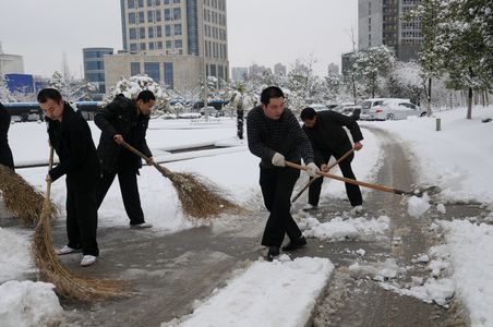 集團(tuán)員工發(fā)揚不怕吃苦,,,,, ,,頑強拼搏的戰(zhàn)斗精神,,,,, ,,頂著寒風(fēng),,,,, ,,不畏嚴(yán)寒,,,,, ,,踩著滑溜的冰水,,,,, ,,奮力地清除道路上的積雪 。 。 。。 。。。經(jīng)過三個小時的奮戰(zhàn),,,,, ,,終于將集團(tuán)大門口、主干道、樓前廣場的積雪清理干凈 。 。 。。 。。。為集團(tuán)交通安全和正常工作提供了有利保證 。 。 。。 。。。