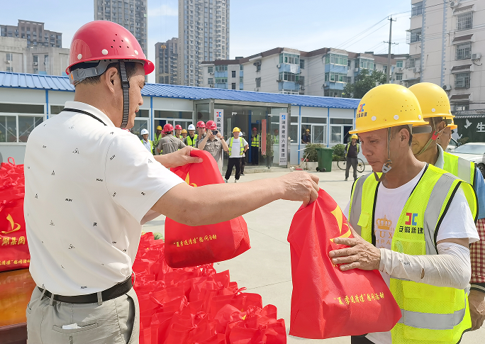入伏后,,,,,合肥市氣溫節節攀升。。。。。。。炎炎夏日中,,,,,如何保障一線勞動者的身體健康,,,,,為他們創造相對舒適的工作環境,,,,,成為j9九游會老哥俱樂部集團城投公司各在建項目重點關注的問題。。。。。。。